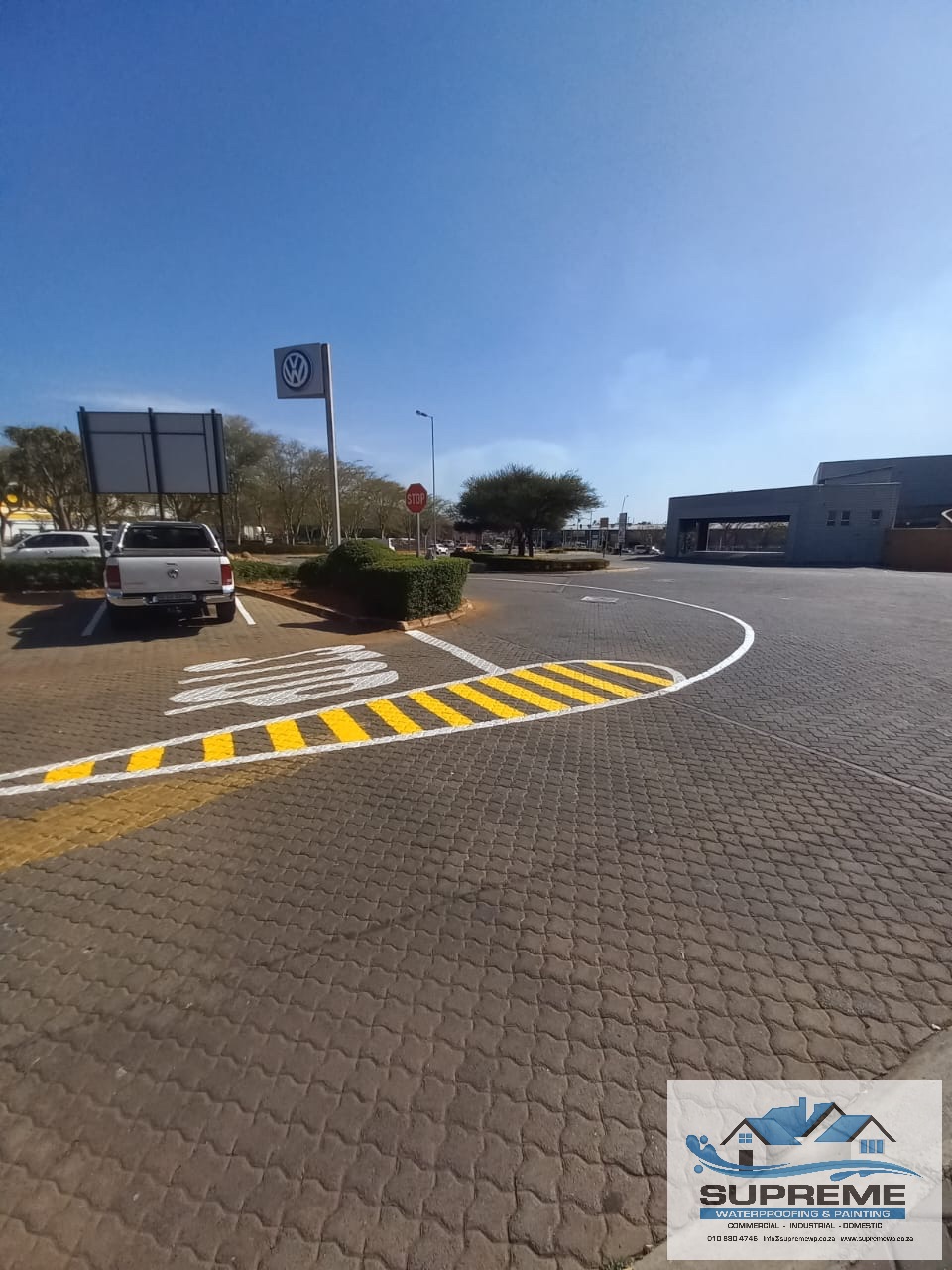 Our client wanted to refurbish the outside area of their workshop, their used car showroom, and the workshop. We identified several issues with waterproofing on their parking ramp, affecting the walls of their workshop. We also had major issues with leaks in the used car showroom from an installed angle iron roof barrier. The parking area also needed new parking bay road marking refurbishment.