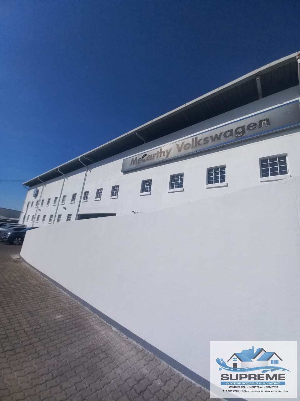 Our painting and waterproofing heroes, went to work hand in hand. New liquid rubber installation to the ramp sides. Extensive crack repairs to all walls. Damp proofing to all external walls. Polyurethane sealer to close off the angle iron roof barrier. Painting refurbishment of the entire used car showroom.